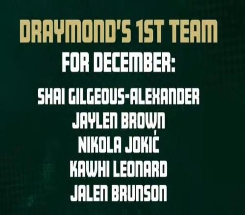 在最新一期的个人播客节目中,勇士内线德雷蒙德-格林评出了他心中的12月份NBA最佳五人组。