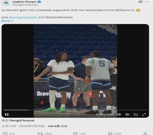 北京时间1月15日,莫兰特和队友小文斯-威廉姆斯在场边爆发激烈争吵,其他人劝阻也无济于事。莫兰特情绪激动,小文斯-威廉姆斯一脸不屑,两个人不欢而散。唇语专家解读,威廉姆斯要求回更衣室再说,莫兰特很生气:“有问题现在就说清楚。”