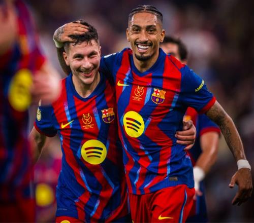 之后,亚马尔替补登场,沙特观众送上掌声。最终,总身价11.2亿的巴萨5-0战胜毕尔巴鄂竞技,冲进超级杯的决赛,实现各项赛事的9连胜。